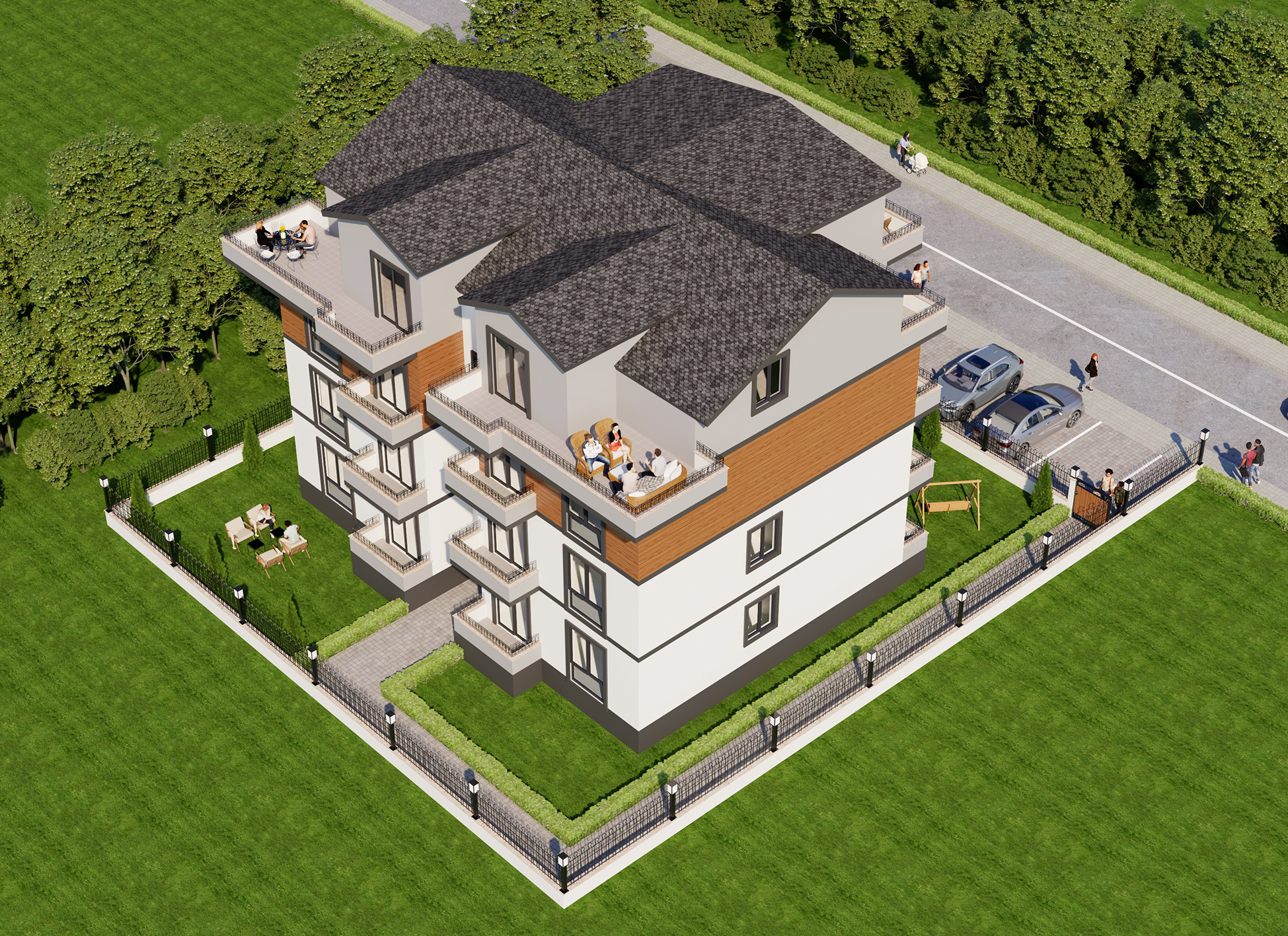 Bu özel tasarım, yalnızca bir yapı değil; konfor, güvenlik ve mimari zarafetin birleştiği yeni bir yaşam alanı sunmayı amaçlamaktadır. 3 boyutlu modelleme sayesinde projemizin tüm detaylarını en gerçekçi haliyle inceleyebilir, iç ve dış mekanlardaki mimari çizgileri yakından görebilirsiniz.