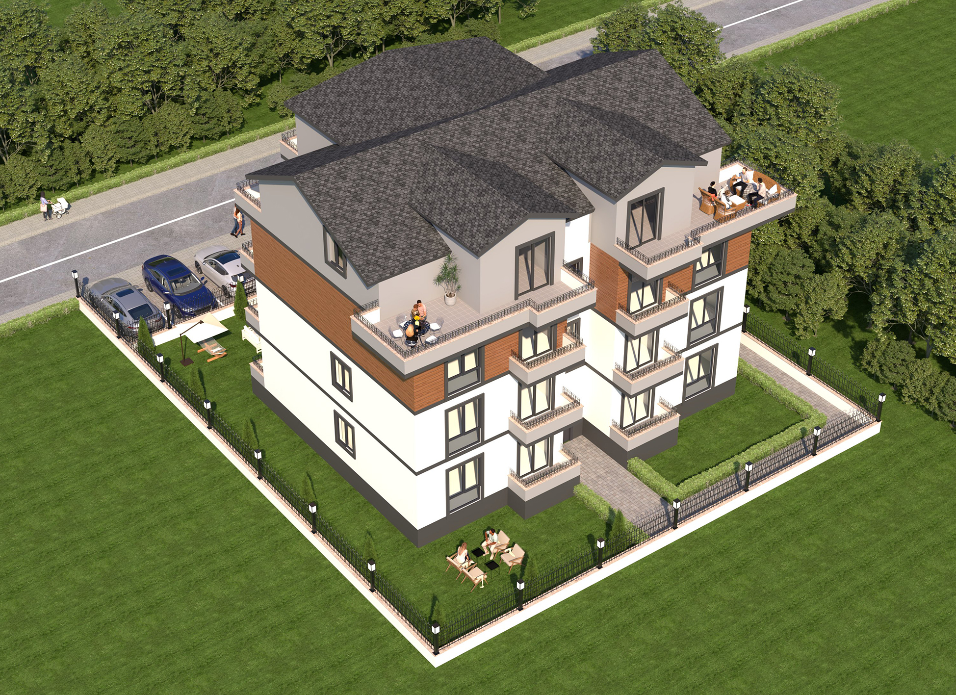 Bu özel tasarım, yalnızca bir yapı değil; konfor, güvenlik ve mimari zarafetin birleştiği yeni bir yaşam alanı sunmayı amaçlamaktadır. 3 boyutlu modelleme sayesinde projemizin tüm detaylarını en gerçekçi haliyle inceleyebilir, iç ve dış mekanlardaki mimari çizgileri yakından görebilirsiniz.
